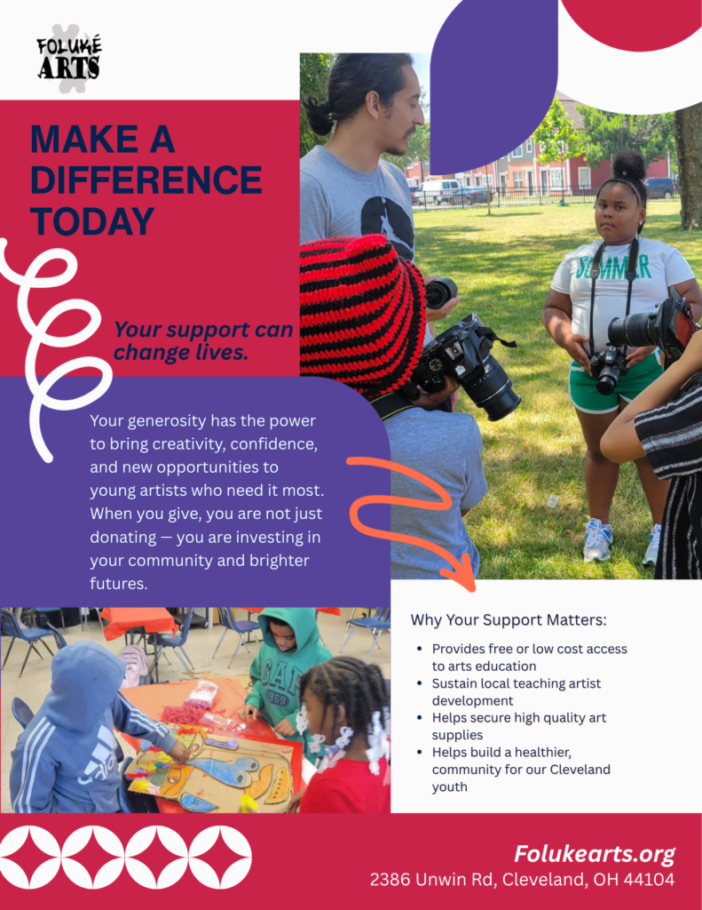 MISSION: FolukéARTS is a community based organization based in Cleveland Ohio, whose focus is to strengthen and support under-resourced communities by providing access to performing arts, visual arts, and arts education. Our focus is at-risk Children, Youth, and Teens, and older adults.